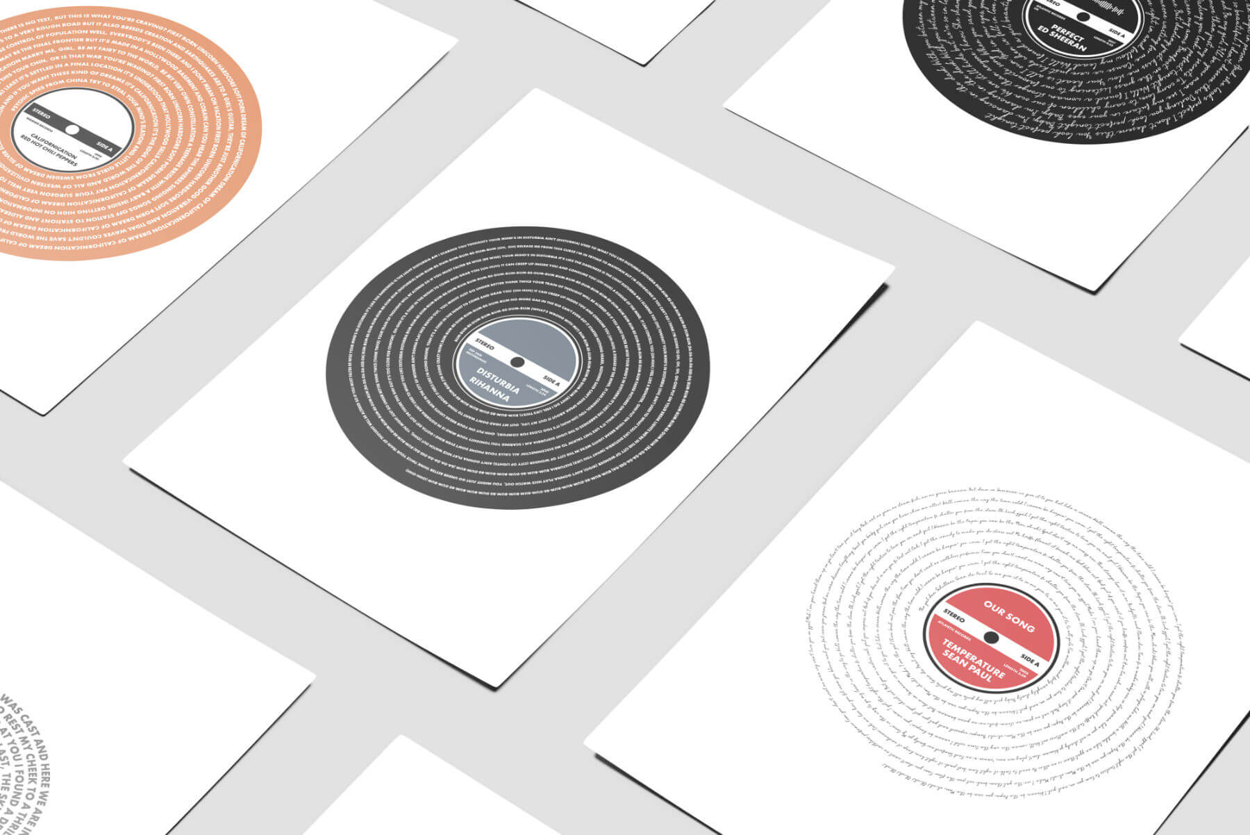 All of our products feature a live preview/editor for you to customize the design however you wish. We develop the technology ourselves including world-first music print designs that generate content just by entering selecting the song title & artist. Not only do we offer music prints, we also offer a selection of map designs and photo prints all featuring our online designing software.