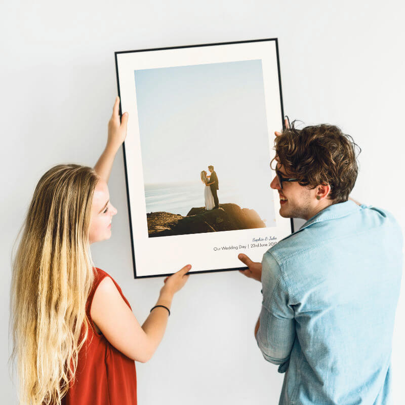 Simply start by uploading your photograph, choose a print size, add some text (..if you want) and we send you your beautiful photograph expertly framed. For an extra special touch, customise your photo with initials, phrases or emojis.